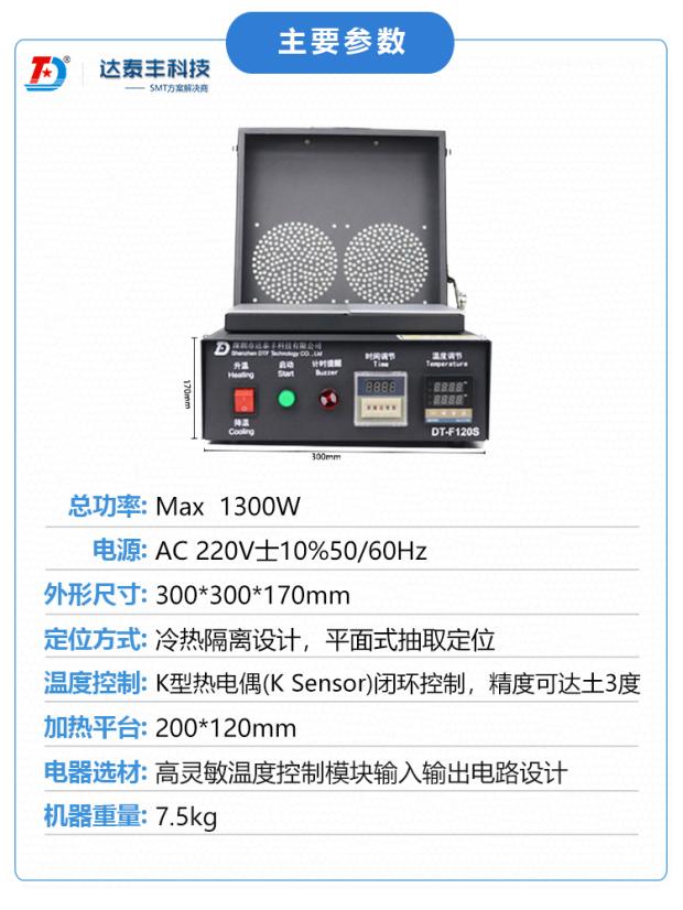 2014年經公司測試使用,更改設計,面板上把散氣孔改為可裝散熱風機的散熱吸所孔。改型:DT-F120S